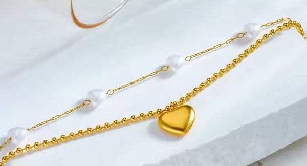 Introducing a beautiful non-tarnish anklet with a double-layer design made from 18k gold-plated stainless steel. It has an original length of 22 cm with a 5 cm extender for a customizable fit. Durable and shiny, it's perfect for both special occasions and everyday wear, making it a timeless addition to your accessory collection.